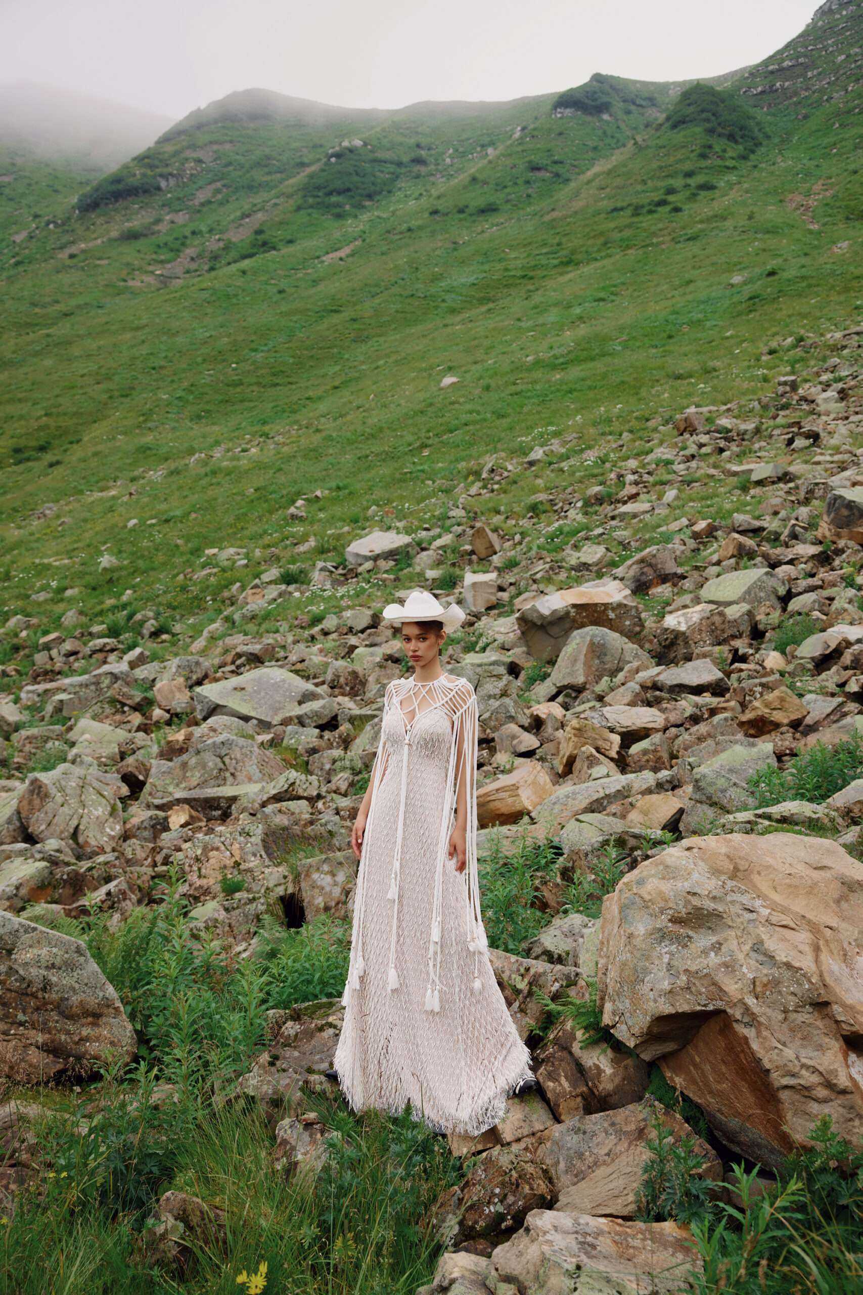 The Montaigne wedding dress from Ariamo Boho is the perfect choice for the free-spirited bride who dreams of effortless elegance with a bohemian twist. This gown features a soft, flowing silhouette that combines light-as-air fabrics with intricate detailing, creating a look that is both relaxed and refined.