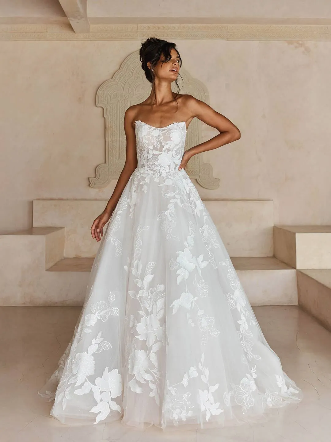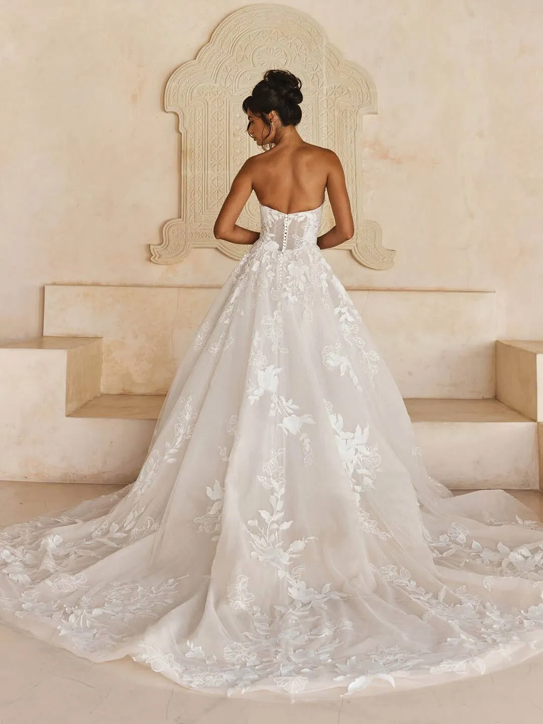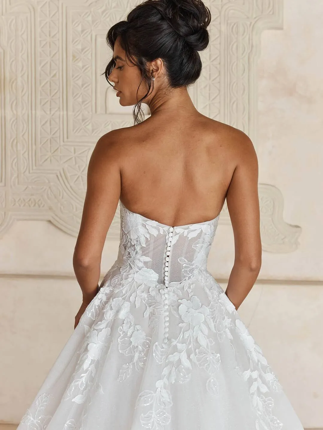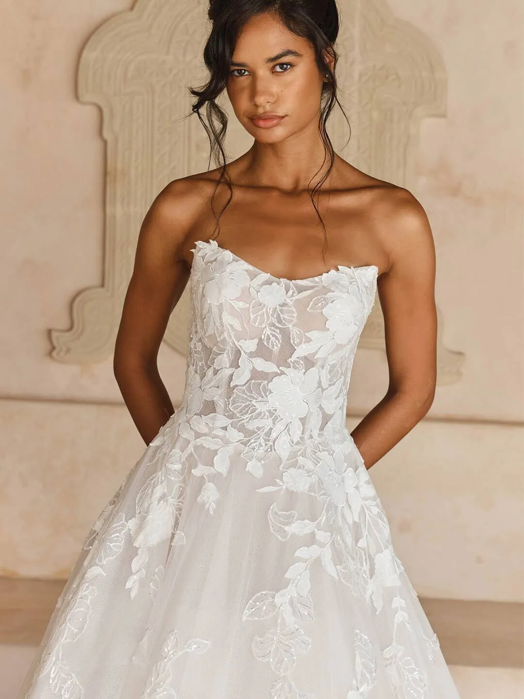 We love Liana’s soft Basque waistline that is right on-trend to bring a modern element to her classic ballgown silhouette.