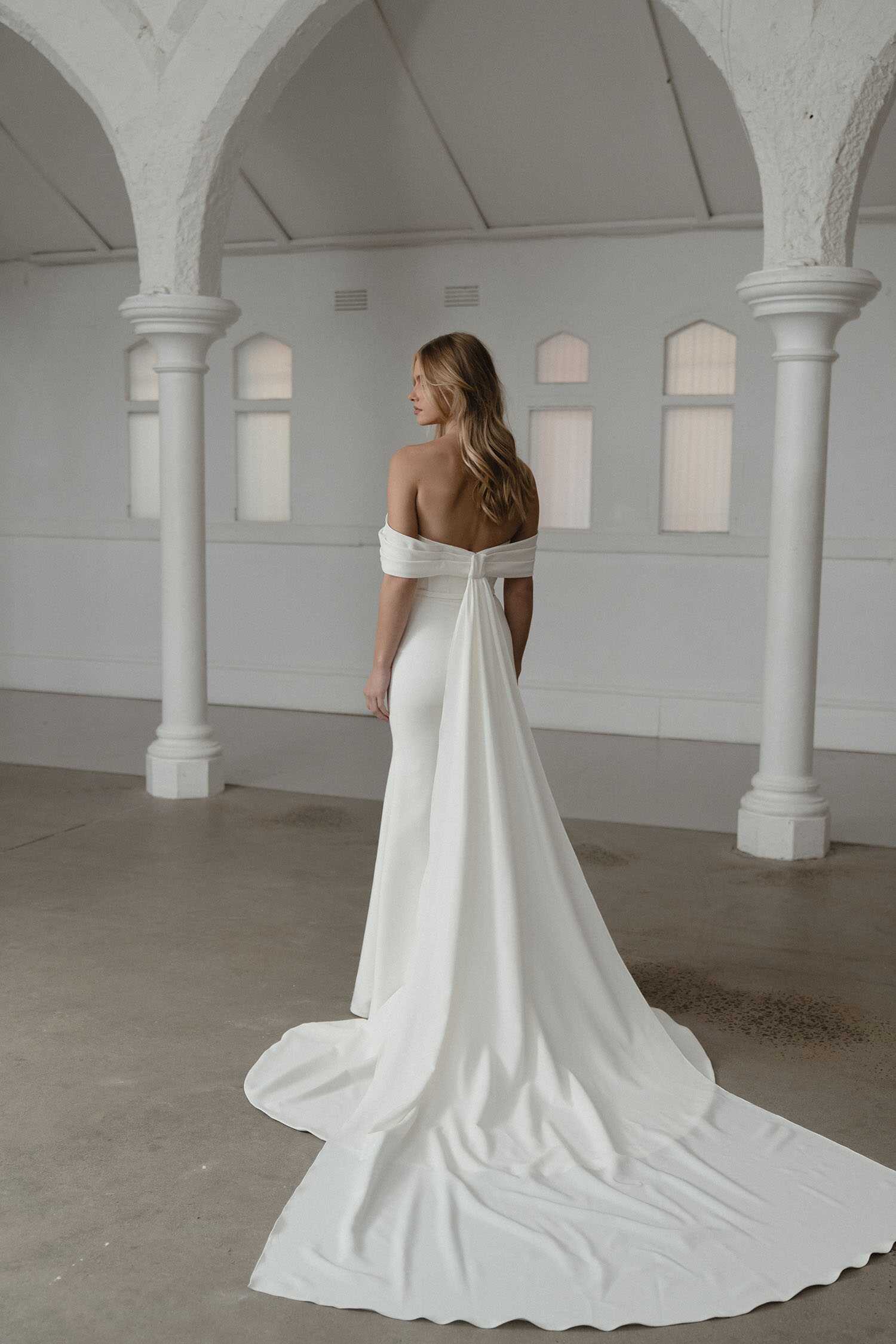 Meet Soren, the epitome of elegant simplicity in a wedding gown. As part of our ‘Memoirs: The Epilogue’ collection, she caters to the contemporary bride who adores minimalist designs. Crafted with care, Soren boasts a fit and flare silhouette, perfectly showcasing timeless allure. Her light crepe with a jersey lining ensures grace and sophistication with every step. With exposed corsetry details and a faux bow off the shoulder sleeve, Soren exudes allure while remaining effortlessly understated. Elevate your special day with Soren, the embodiment of the modern minimalist bride’s dreams.