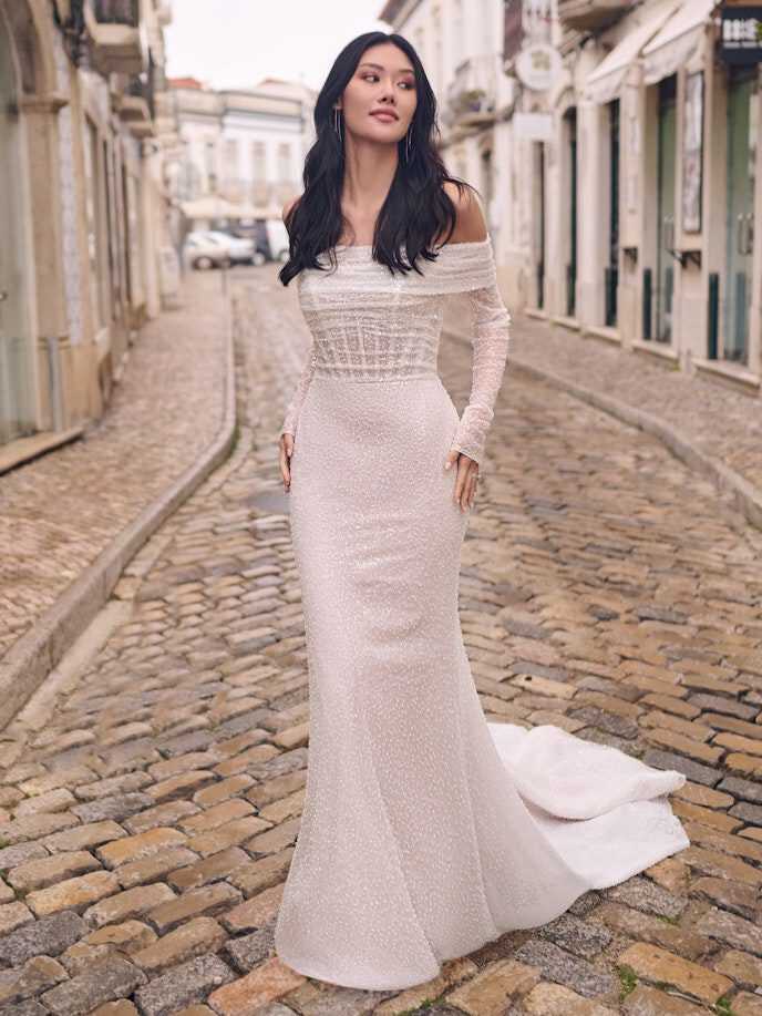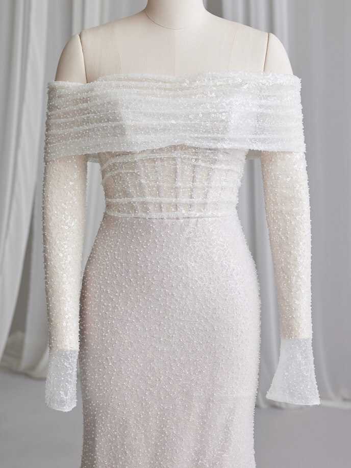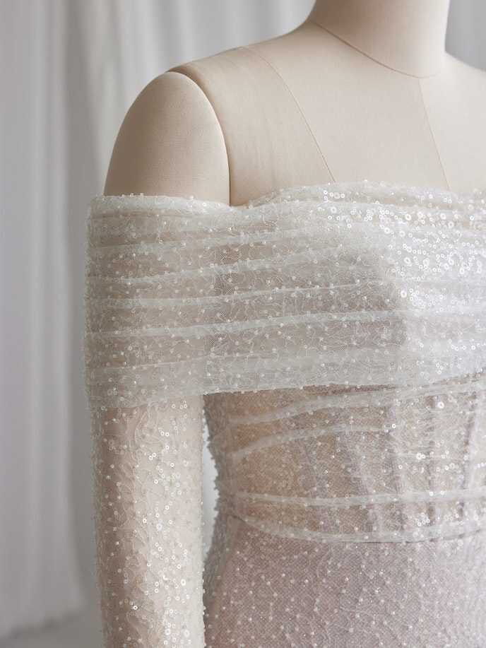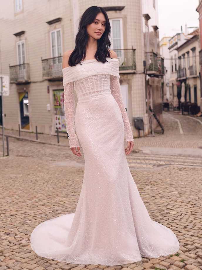 You’re bold. You’ve got a vibe. You’re destined for a beaded illusion corset wedding dress made for celestial backdrops and magical lighting.